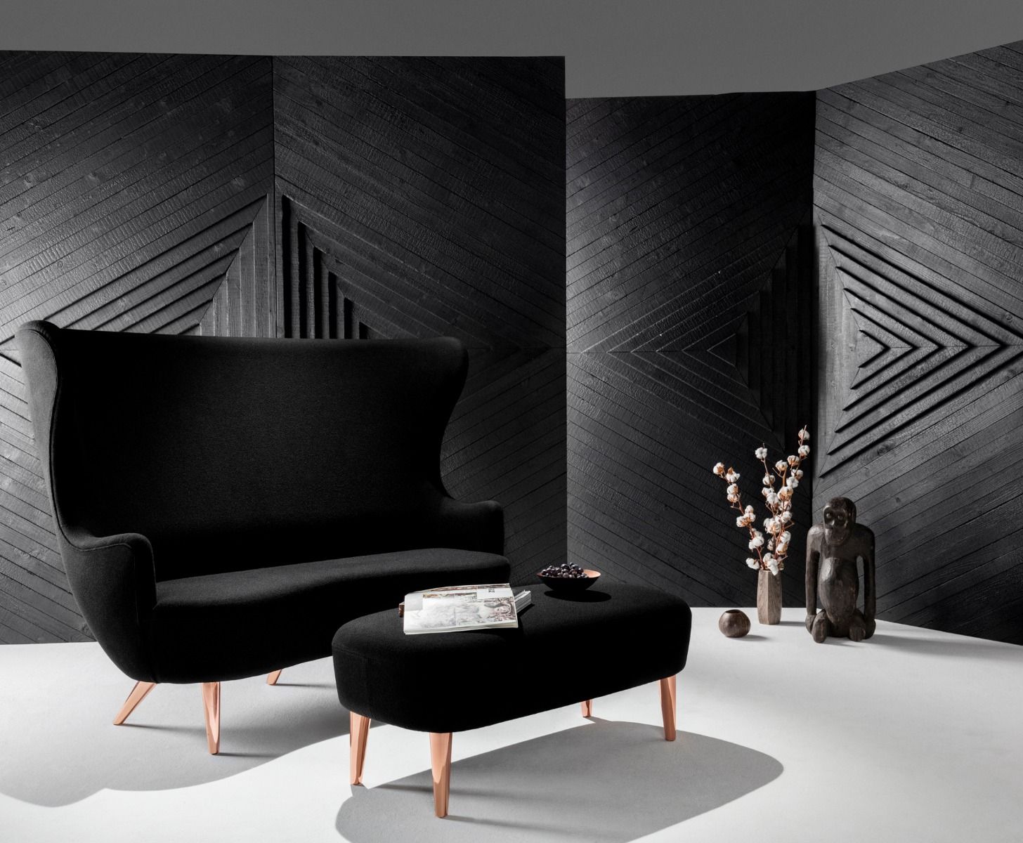 这款长脚凳被设计成与脚背沙发一起使用,以增加滑稽的层次