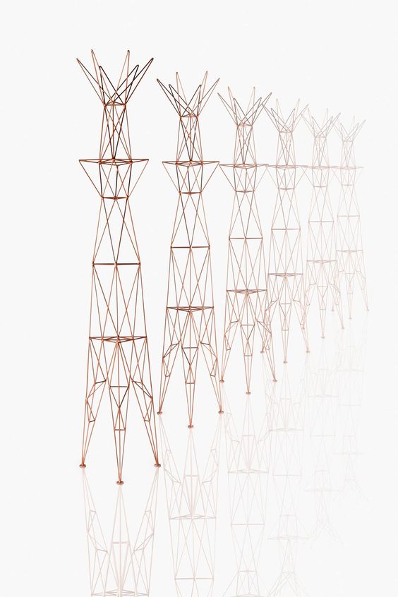 铜脚的设计就像一座桥的结构,它的手被焊接在一起,这使得它有了一个空中的外观。