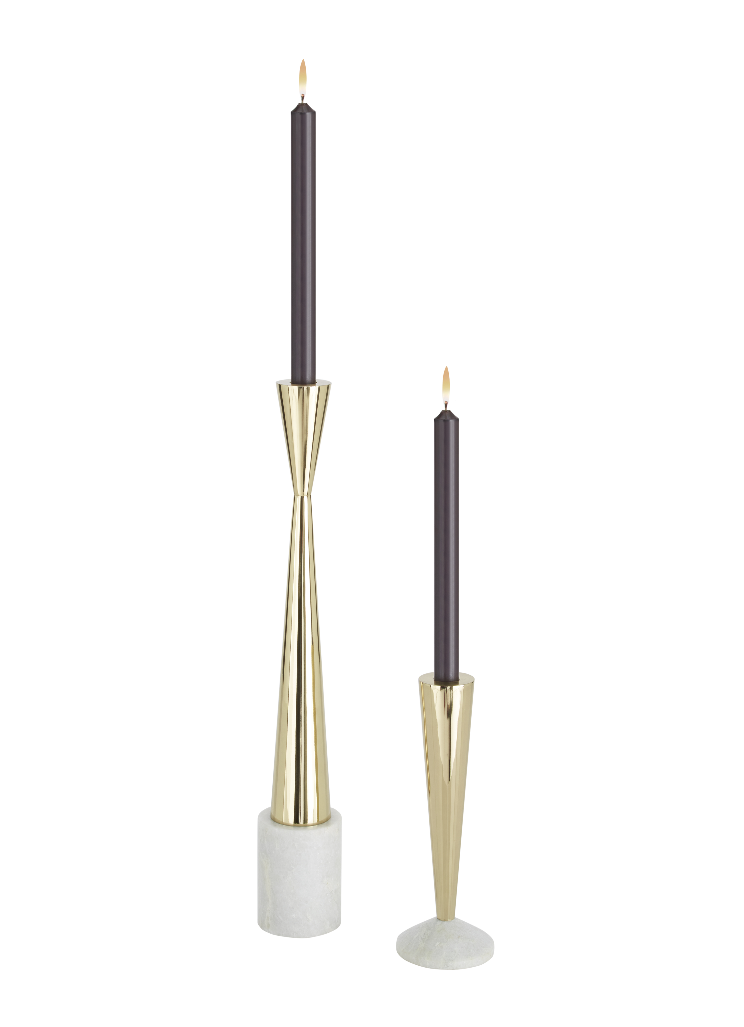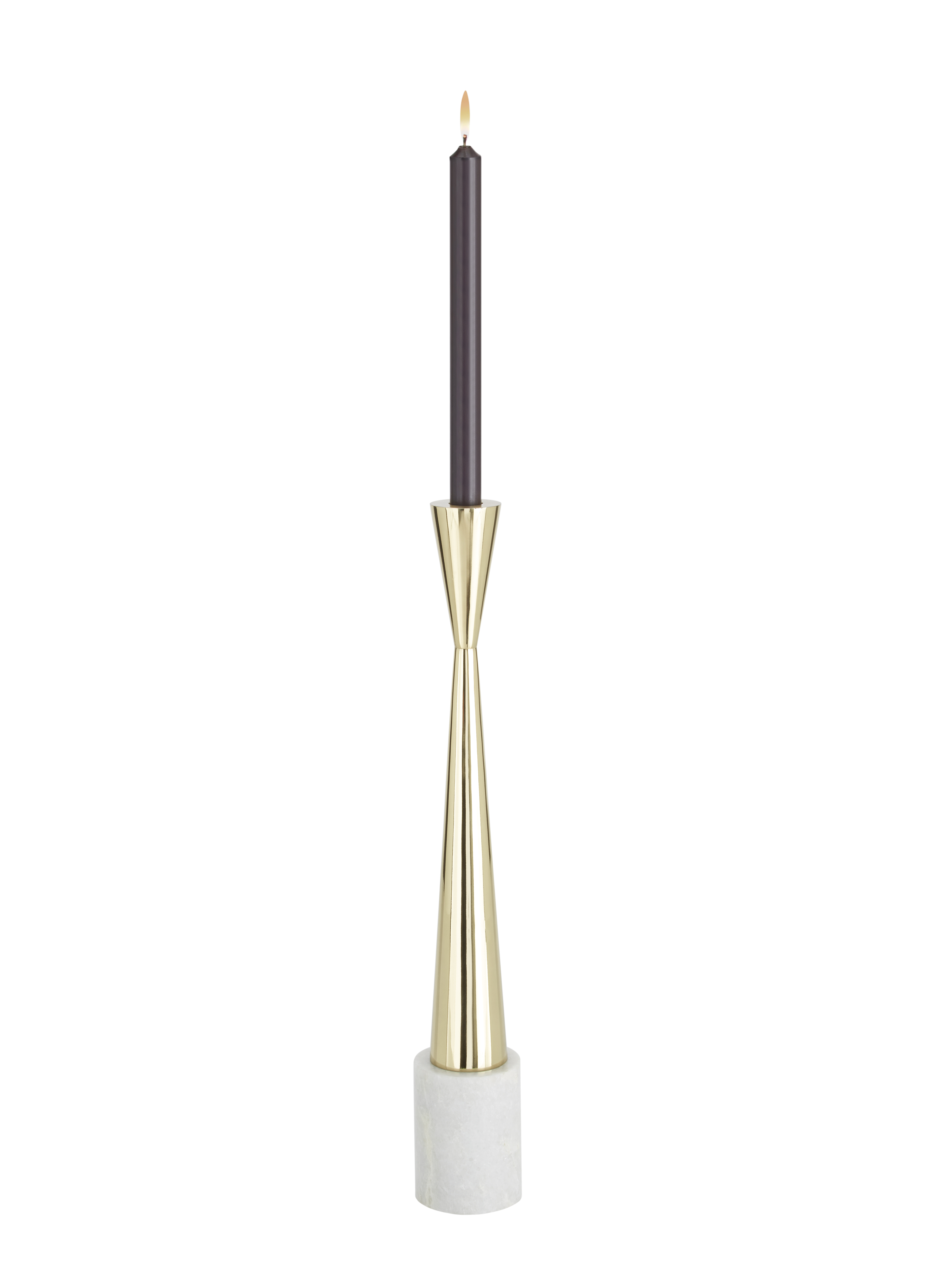 一种镶有坚固黄铜柱的莫尔瓦德大理石烛台。也可在一个简短的版本上使用。