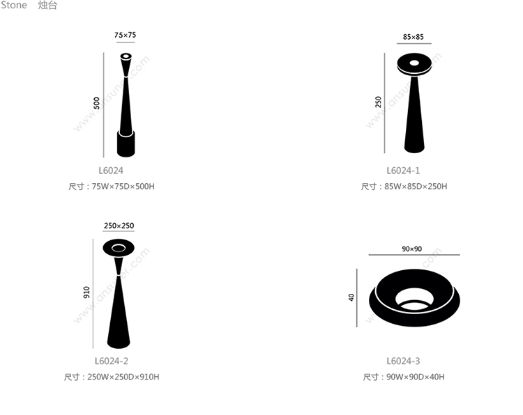 Stone 烛台 系列尺寸/示意图