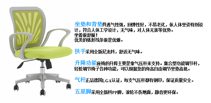 3  坐垫:采用高弹性环保定型海绵,长久使用不变形,且设计符合人体工程学理念,扪透气布,弹性好。