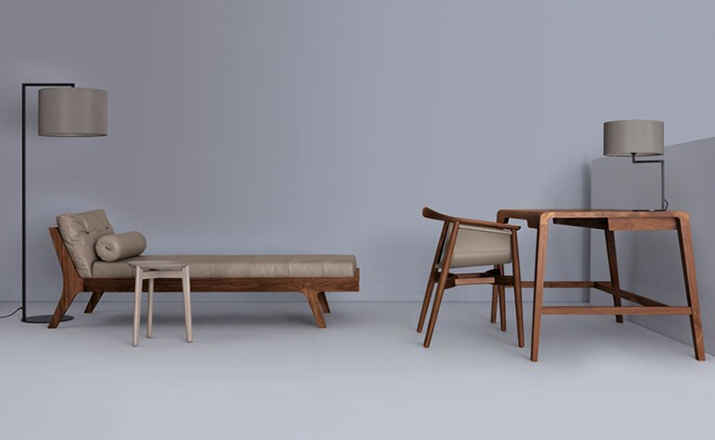 德国家具厂牌 ZEITRAUM 讲究的不仅仅是家具,它着重的是一种"生活态度",每件 ZEITRAUM 家具除了需具备实用、耐用、容易搭配的基本要件,更重要的是可以衬托用户与空间的个性,简约取代夸张花俏的线调,细腻精巧的做工低调传递设计师缜密的设计思维。ZEITRAUM 使用来自永续森林的落叶型硬木,表面以有机油/蜡涂装,完全不使用化学物质,让用户与家具在空间自由呼吸。mellow daybed(梅洛沙发椅),由丹麦设计工作室Formstelle设计,水曲柳或胡桃木或橡木实木床架、床垫采用高弹海绵,高级真皮或PU或羊绒扪面、靠枕填充物为鸭绒、左右扶手可选。