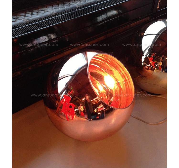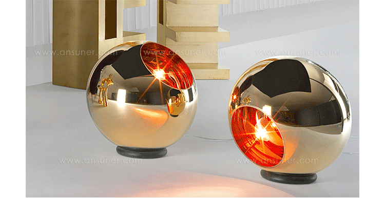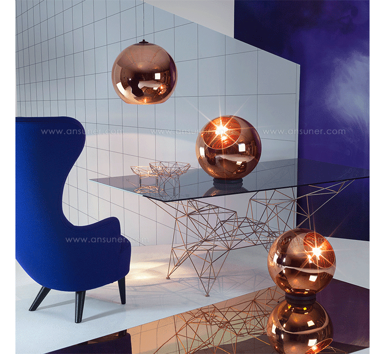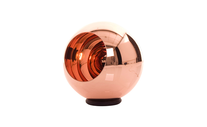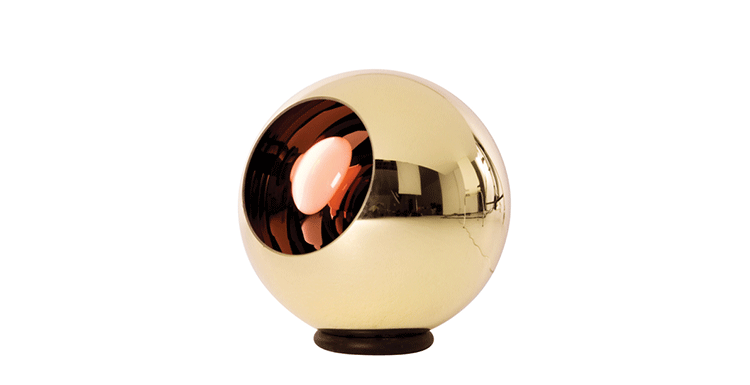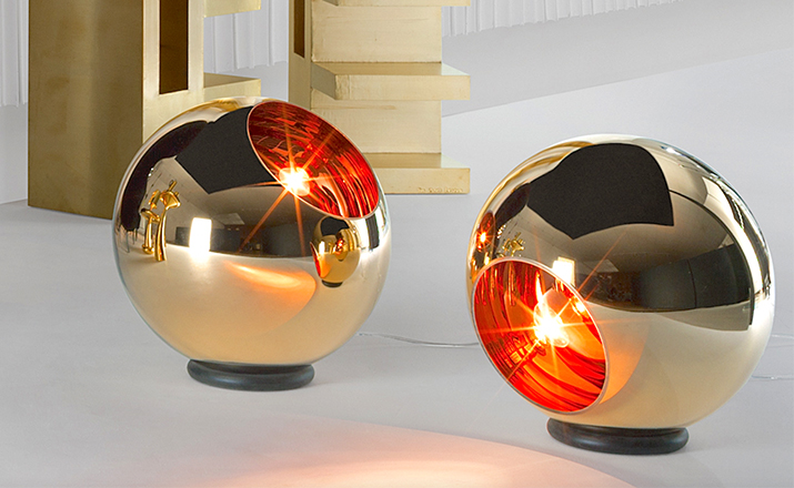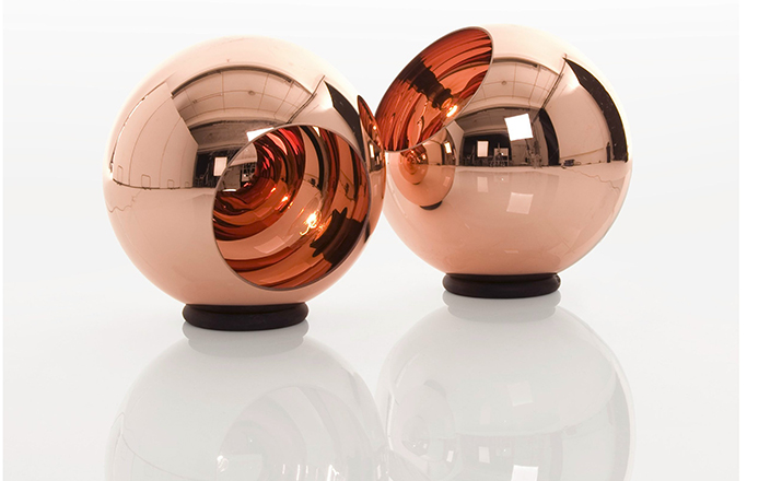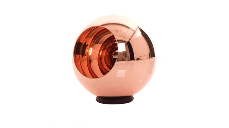 A polycarbonate sphere, which is vacuum metallised with copper inside and brass outside to give a double colour effect. Available as a floor or pendant light
