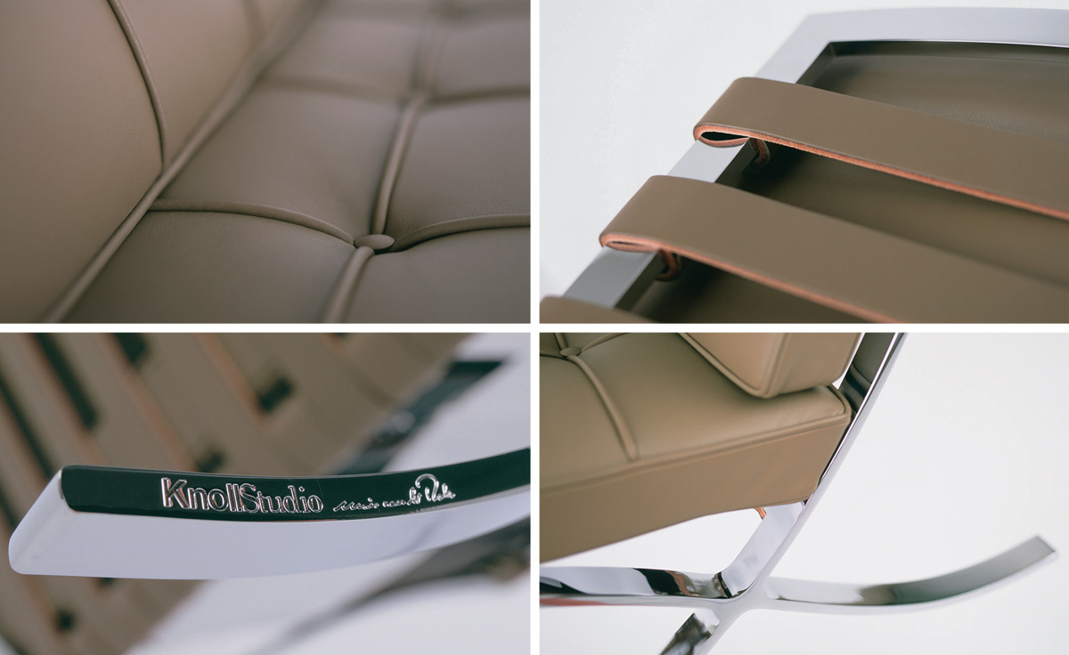 巴塞罗那椅由设计师密斯在1929年巴塞罗那世界博览会上,为了欢迎西班牙国王和王后而设计,同著名的德国馆相协调。这件体量超大的椅子也明确显示出高贵而庄重的身份。当年的世博会德国馆是密斯的代表作,但由于建筑的设计意念独特,竟没有合适的家具与其搭衬,所以他不得不专门设计了巴塞罗那椅来迎接国王和王后