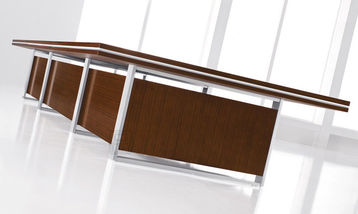 ※  上图为会议桌角度展现,此款会议桌木纹鲜明,配以银色为点缀,独特的线形设计韵含了一种灵气,使人眼前一亮。多元化的桌面设计能满足您各种组合变换、空间互补的要求。