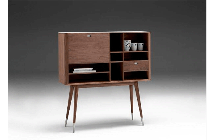 elroy retro upright credenza(埃尔罗伊复古立式书柜)是Kardiel公司制作的经典实木家具,1960年设计,是一件不朽的设。这个当代复古立式书柜有着高高的脚架,多个滑动抽柜和开放式抽屉。它允许“公开展示”和“隐蔽”所有类型的珍惜贵重物品的存储物。不锈钢装饰抽屉拉手和基部的尖尖的脚钉。
