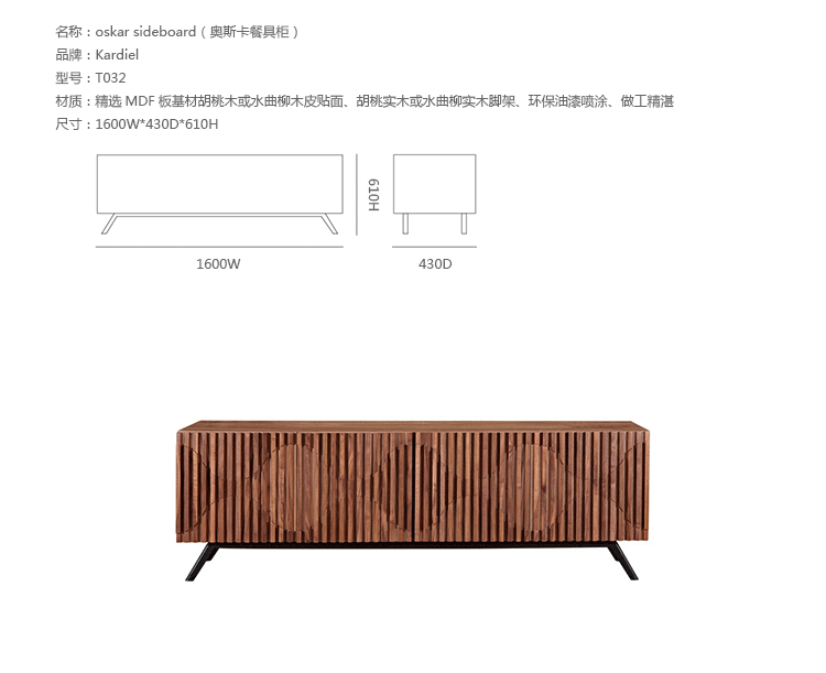 oskar sideboard(奥斯卡餐具柜)是Kardiel公司制作的经典实木家具,有着令人愉快的美学有机形状和存储容量,这是一个必须有的家具。制作采用精选MDF板基材胡桃木或水曲柳木皮贴面、胡桃实木或水曲柳实木脚架、环保油漆喷涂、做工精湛。