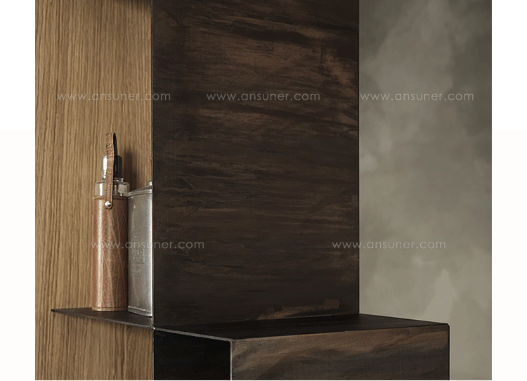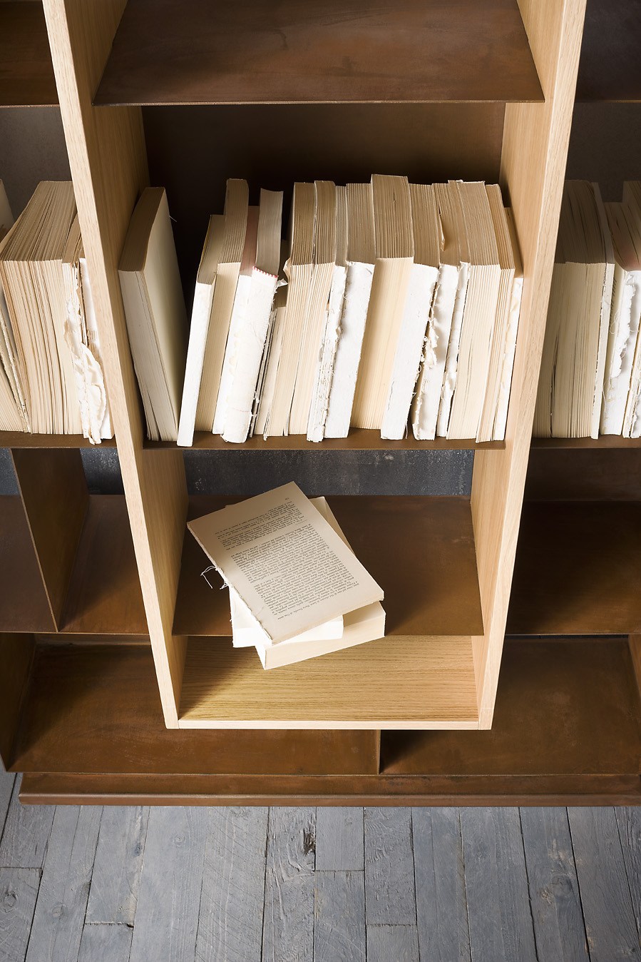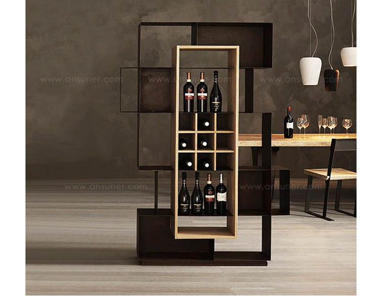 优雅的简单对象的成色瓶架、书架可与天然橡木插入或翁é完成铜绿耐候完成彩色木插入.