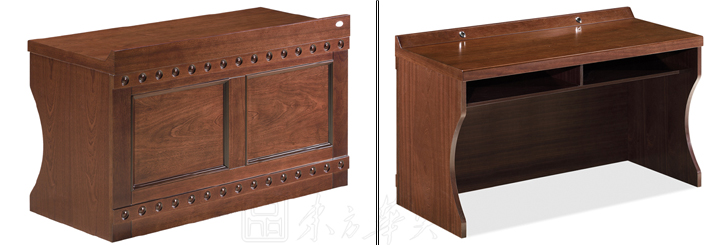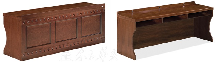 ※  全木制结构条形桌,桌脚可做直形及弧形,下设空格储物空间,内嵌式皮垫写字板,麦克孔,满足不同需要;