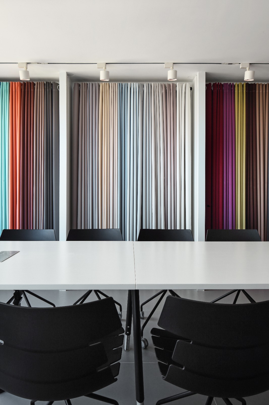 布料样品具有缤纷多样的色彩,设计师从公司的产品中汲取灵感,将五颜六色巧妙融入设计,力求为业主打造一个崭新、舒适且和公司形象高度吻合的办公空间。