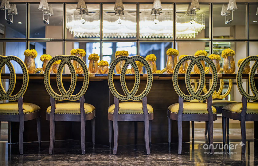 在聚餐厅,你可见独具风情的铆钉元素餐椅,来自欧洲的复古家具,宛若白流苏一般的水晶吊灯,图案独特的地毯与精美的花艺,交叠出艺术的格调。